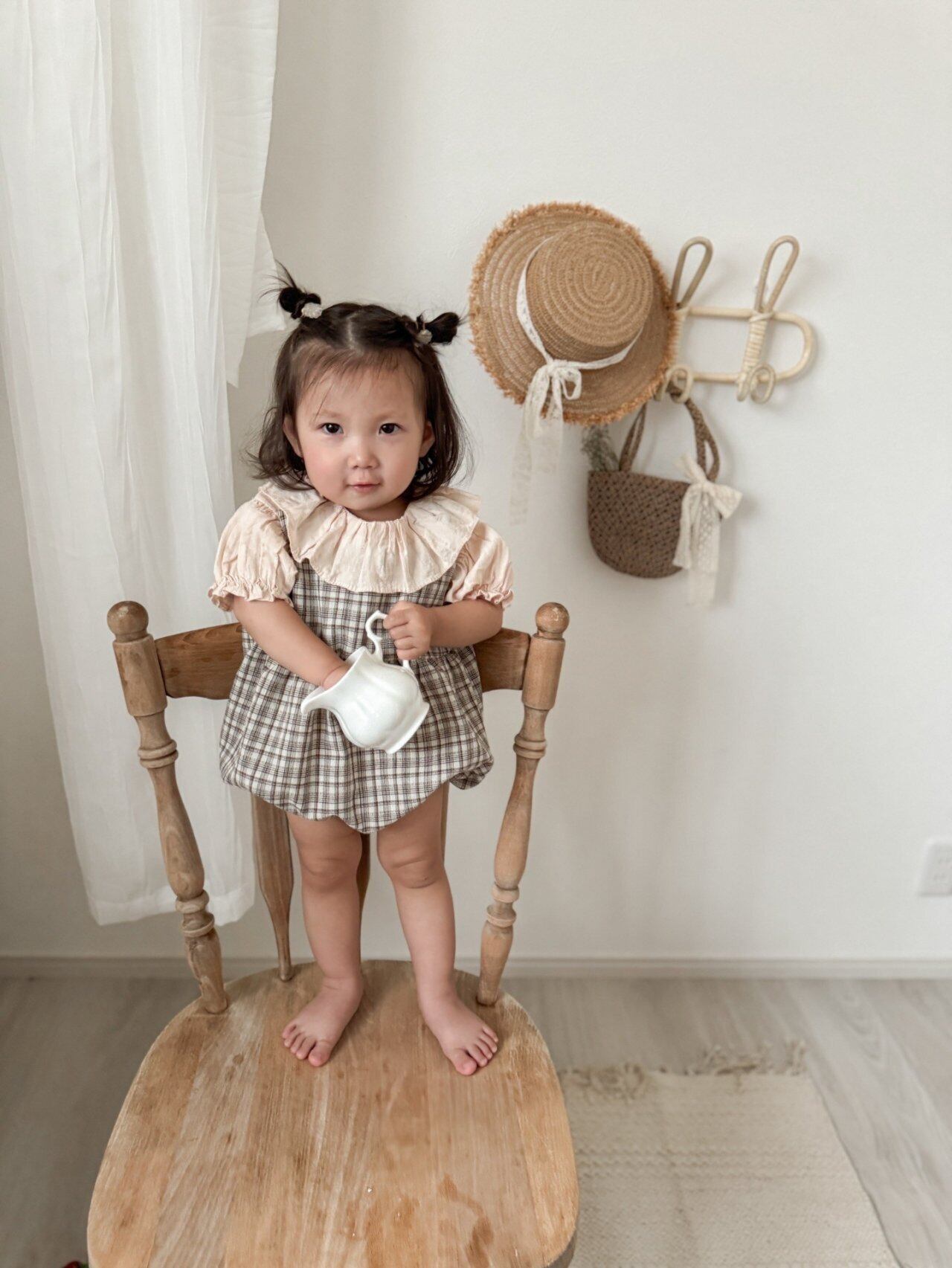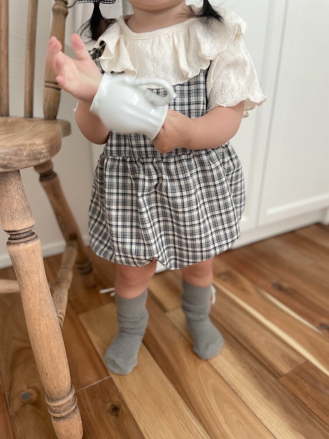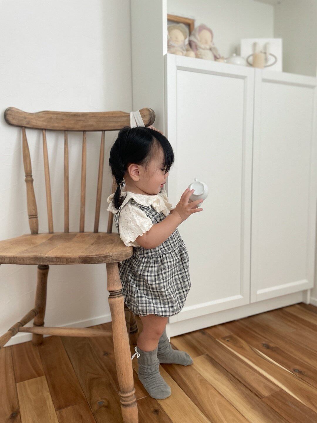 【即納】mimi market check rompers
